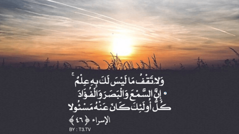 ويأمرنا ربنا في كتابه أيضا : بسم الله الرحمن الرحيم “وَلَا تَقْفُ مَا لَيْسَ لَكَ بِهِ عِلْمٌ ۚ إِنَّ السَّمْعَ وَالْبَصَرَ وَالْفُؤَادَ كُلُّ أُولَٰئِكَ كَانَ عَنْهُ مَسْئُولًا (36)” صدق الله العظيم (سورة الإسراء).