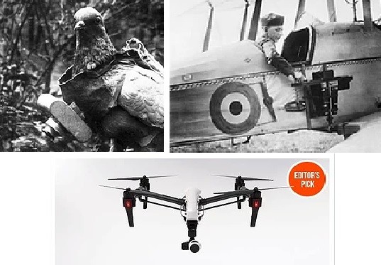 في بداية القرن العشرين استخدم المخترع الألماني يوليوس جوستاف نيوبرونير “الحمام” ليختبره في التصوير الفوتوغرافي وكانت تعلق في رقبة الحمامة كاميرا وبها عداد زمني ، واستخدم الألمان هذه الوسيلة في الاستطلاع على العدو في الحرب العالمية الأولى بين عامي 1914 – 1918م.